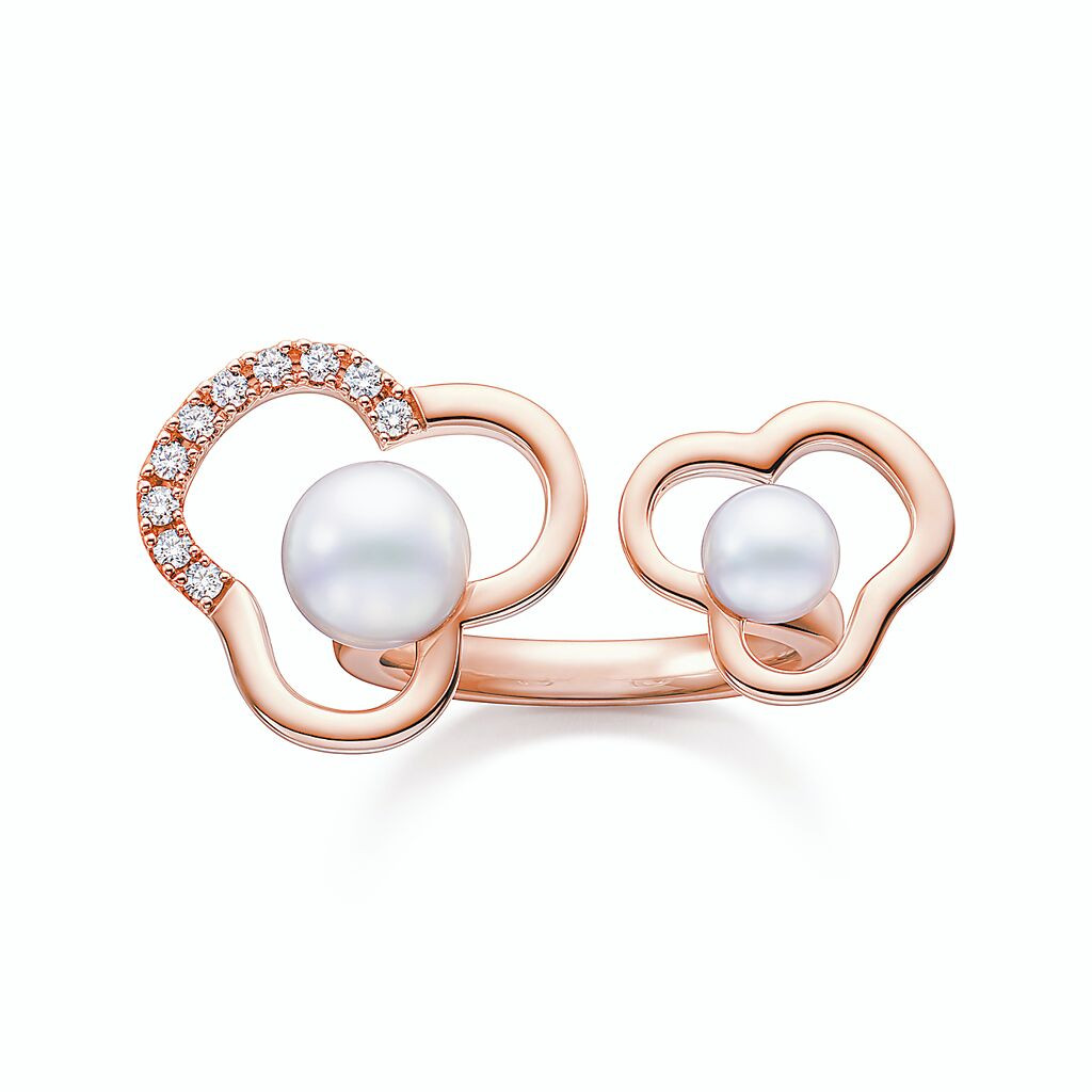 TASAKI chants櫻花金鑲鑽阿古屋珍珠戒指,18萬3000元。(TASAKI提供)