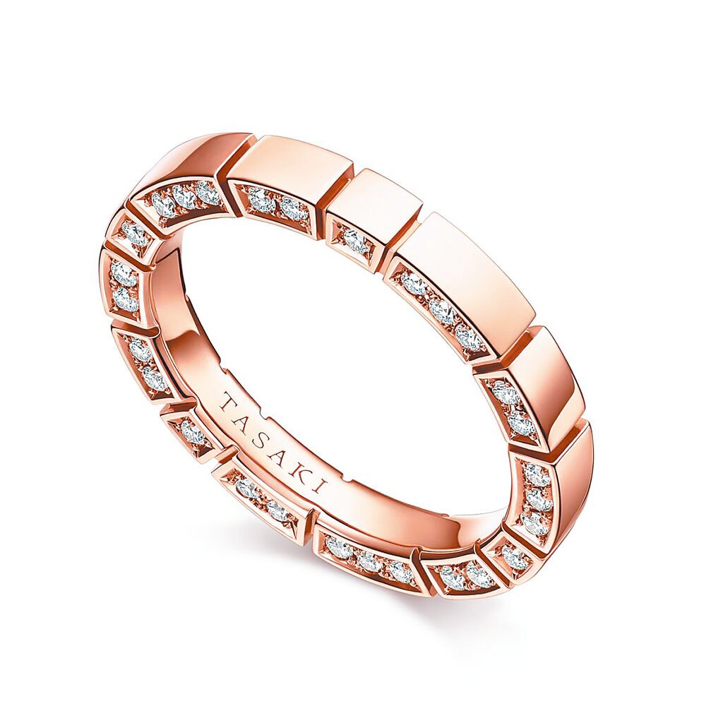 深受準新人喜愛的PIANO系列珠寶,以音符詮釋愛的永恆旋律,靈感源自鋼琴鍵盤的優雅韻律,「琴」與「情」同音,是最佳的訂情物,尤其線條簡約可24小時佩戴,是最佳的婚戒首選。全系列採用TASAKI標誌性的櫻花金、950鉑金與黃K金等貴金屬,搭配精挑細選的頂級鑽石,流暢的線條和簡約的設計風格,象徵愛侶間珍貴的承諾與不變的誓言,是一款實用百搭、可平日佩戴的中性珠寶。