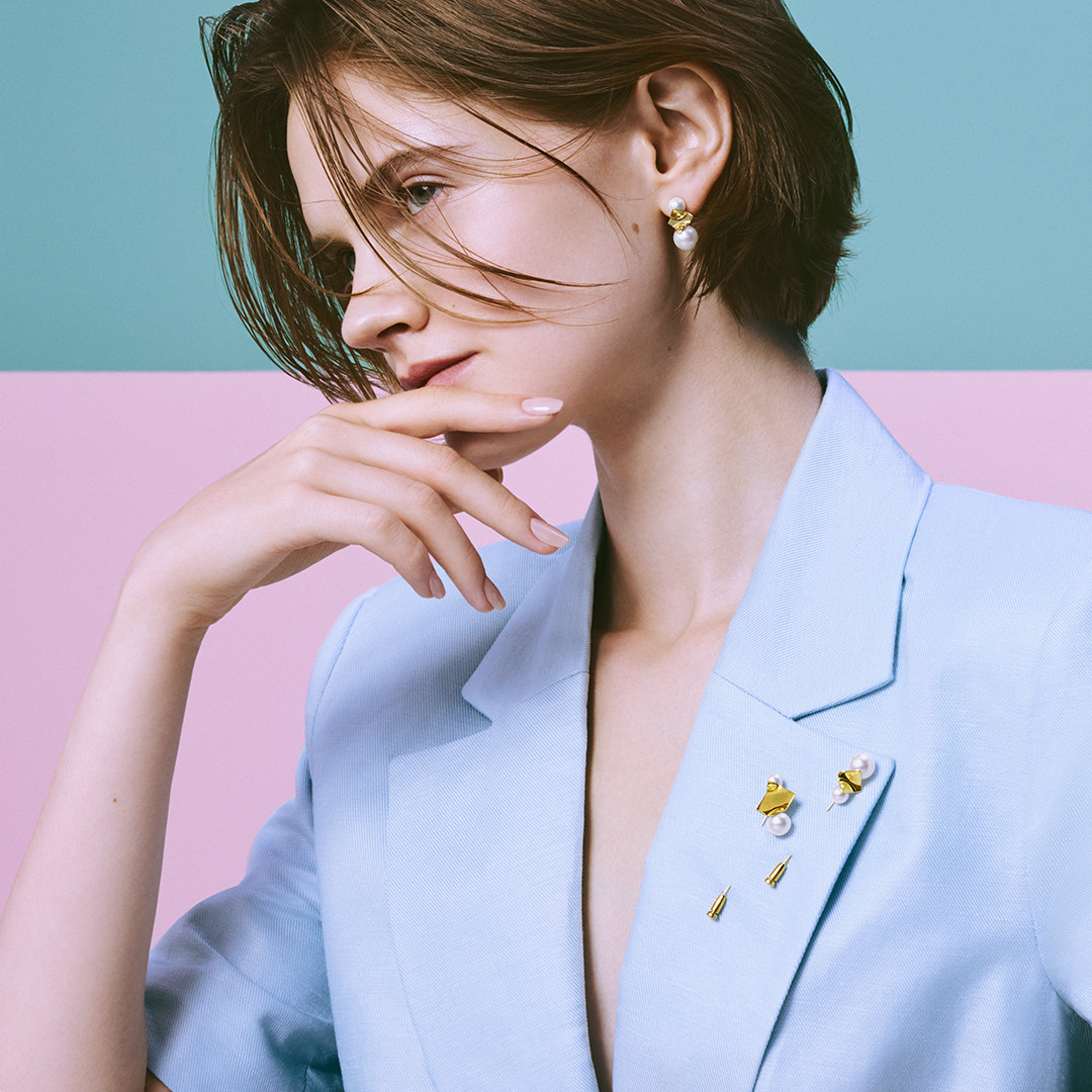SQUARE LEAF 與 DISC PEARL 系列將經典與創新巧妙交織,跳脫珍珠的傳統框架,詮釋其千變萬化的風貌。透過融合不同品種的珍珠與閃耀金質設計,不僅將 TASAKI 精湛工藝發揮得淋漓盡致,更為配戴者注入優雅俐落的姿態,釋放獨特且不凡的魅力。