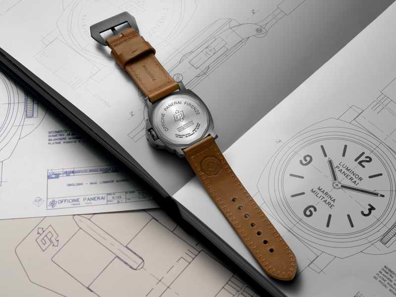 錶盤鐫刻「Marina Militare」(義大利海軍)的字樣,時標與字母的字型也經過重新設計,精準復刻 1993 年錶款的原始風貌。不同於沛納海標誌性的三明治錶盤,PAM05218 採用單層鏤空的錶盤結構,細節鐫刻後塗覆 Super-LumiNova® 夜光塗層,並融入凹弧設計,視覺上提升時標的立體感。除此之外,此款新作也重現 1993 年當代錶款最具代表性的視覺特徵 — 錶盤與指針的撞色搭配,PAM05218 採用單層雕刻黑色霧面錶盤,搭配焦糖色 Super-LumiNova® 夜光塗層與色調更淺的指針,精心還原沛納海首批民用腕錶的細節巧思。錶背採用旋入式精鋼底蓋並完美復刻原創腕錶上的 Officine Panerai Firenze 的字樣、充滿歷史意義的 OP 標誌與錶款細節,防水深度高達 300 米。