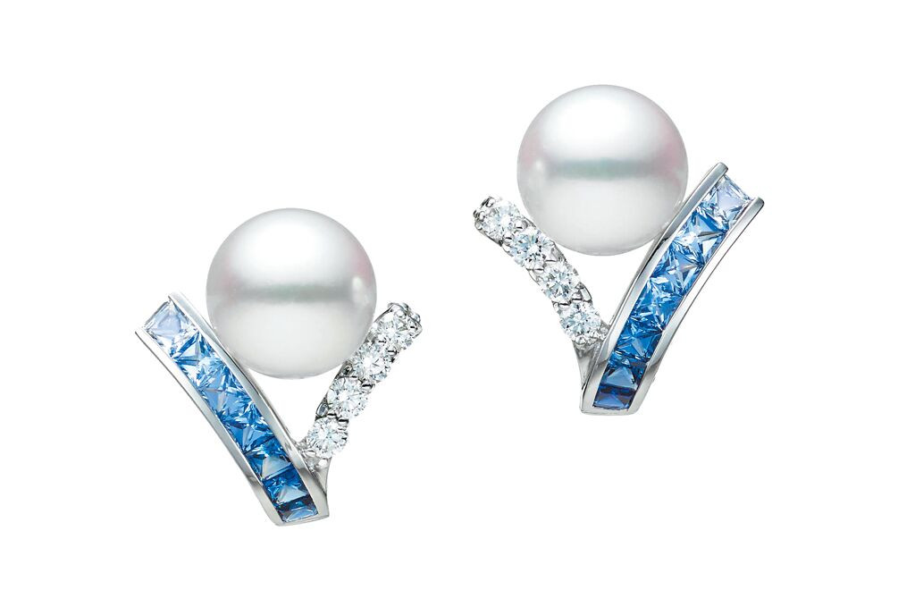 MIKIMOTO Ocean系列藍寶石珍珠耳環 ,21萬4000元。(MIKIMOTO提供)