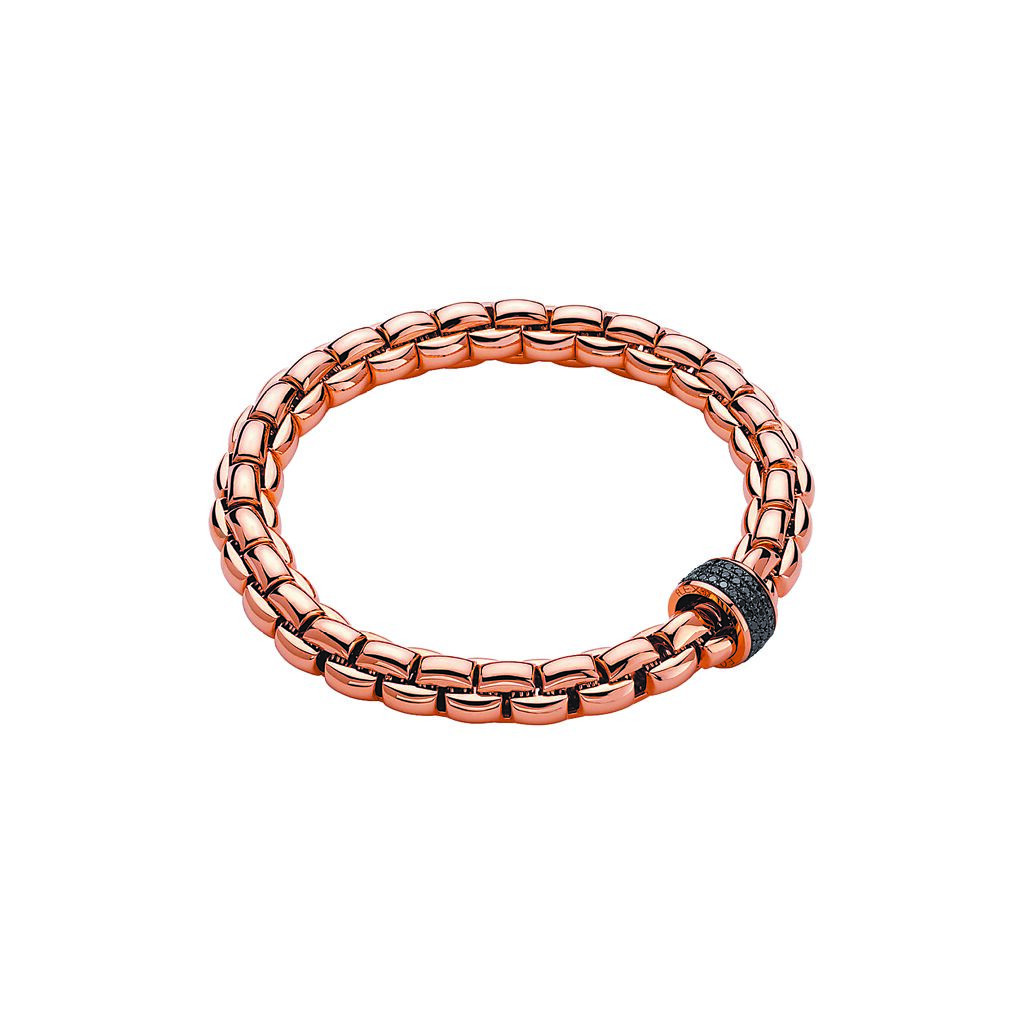 義大利FOPE可伸縮彈性玫瑰金鑲0.65克拉黑鑽寬版手鍊,35萬元起。(瑞博品提供)