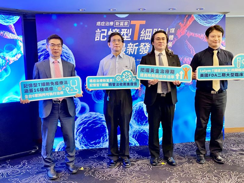 左起為路迦生醫劉炳中醫療長、板橋中興醫院馮德誠主任、路迦生醫唐稚超董事長、亞東紀念醫院張晟瑜醫師共盼記憶型T細胞為癌症治療帶來新發展。