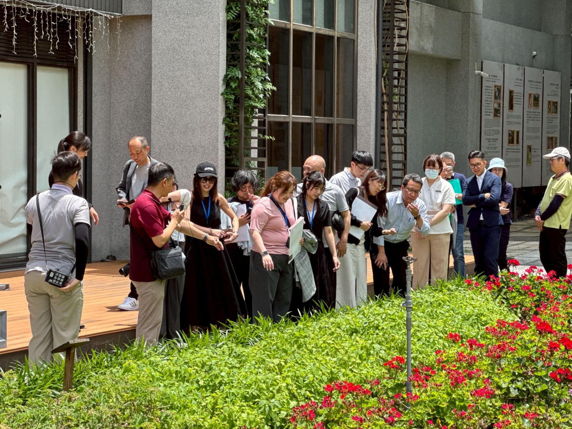 圖說:日本旅行業者實際體驗香草園區拈聞香草聽導覽人員說明。