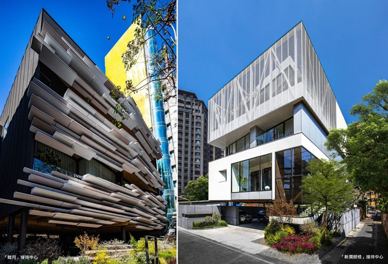 今年中山區危老都更推案表現亮眼,嶄露地段實力,圖為中山女高建國啤酒文創園區首排的「睦月」(圖左)、南京東路建國高靜巷內的「新潤朗格」(圖右)接待中心。