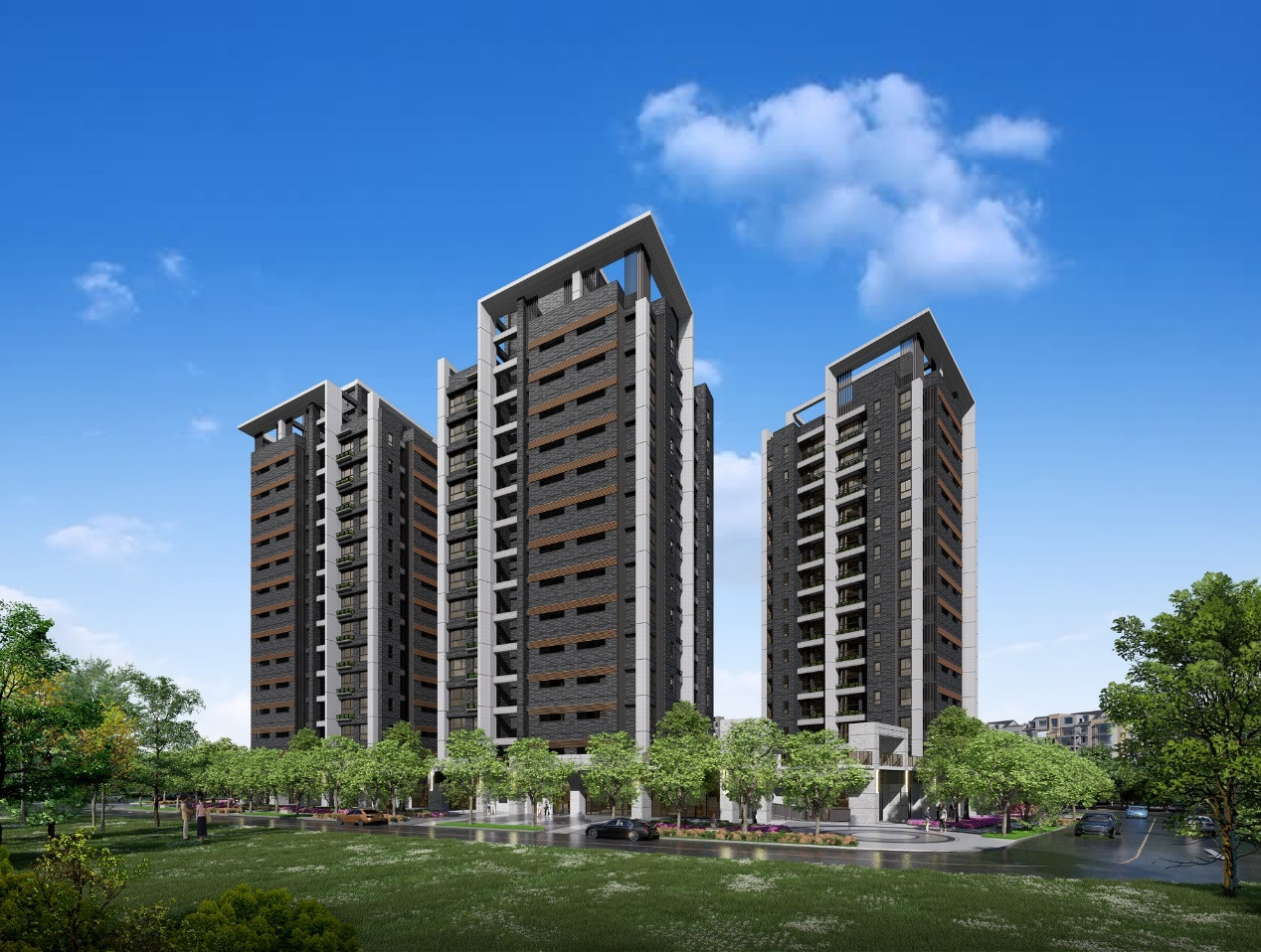 「合登領航城」以自住角度出發,吸引一波波首購與自住型買方進場。圖為該案建築外觀3D示意圖。(圖/合登領航城提供)