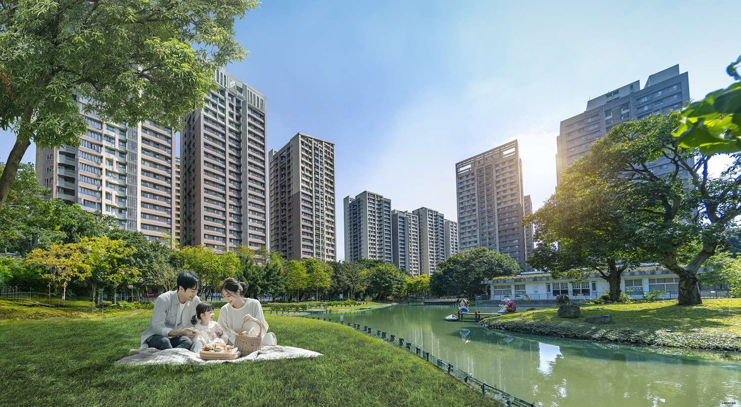 「森之道」社區開發規模達3.3萬坪,有浮洲親民公園與公八公園兩座公園、6座生態跳島、89種複層樹系,總計綠化範圍約2.5萬坪,綠覆率超過150%,又被北藝大藝術生活街區與大漢溪浮洲藝術河濱公園環繞,感受家住公園裡的靜奢環境,是板橋在江翠外,另一處濱水生活圈秘境。