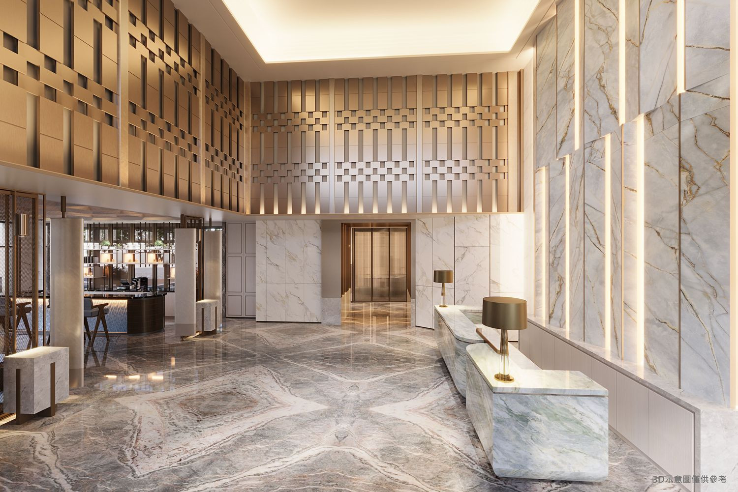 「富都新玉」社區大廳以精品飯店美學打造,營造尊榮迎賓氛圍。(3D示意圖僅供參考)