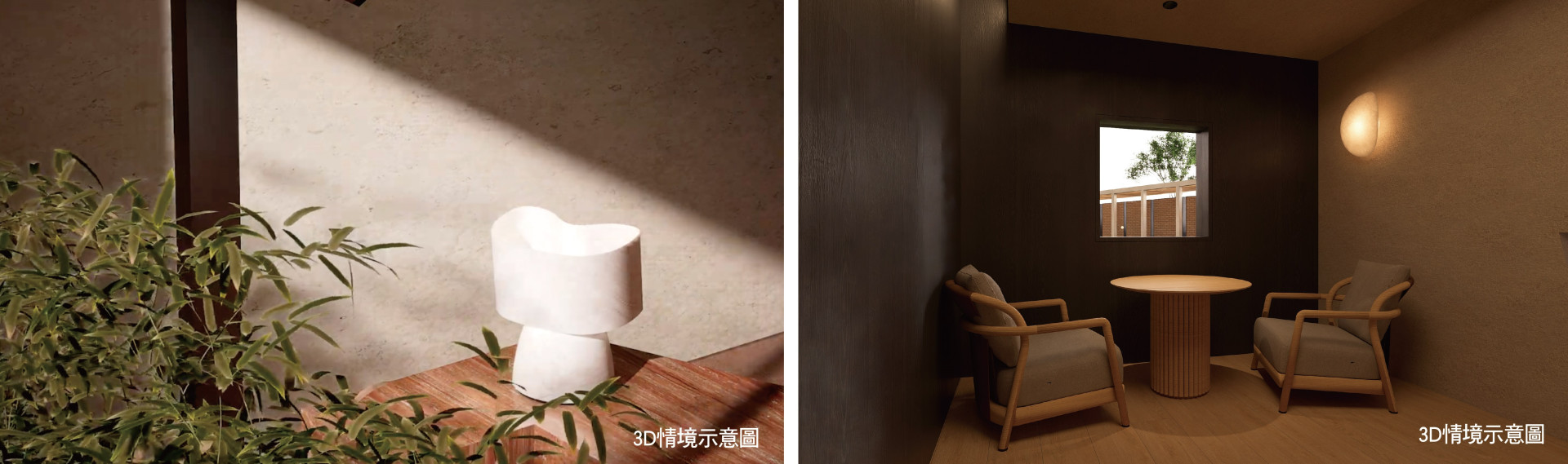 「迴東騰」公設空間從迎賓廳、開放式沙發空間、兩間隱蔽的閱讀包廂,到藏身庭園在水瀑樹影扶疏間的冥想密所,依次從公、私、隱、密四個不同層次遞進,體現日本文學界唯美派大師谷崎潤一郎,在《陰翳禮贊》說的「美,不存在於物體之中,而存在於物與物產生的陰翳的波紋和明暗之中。」