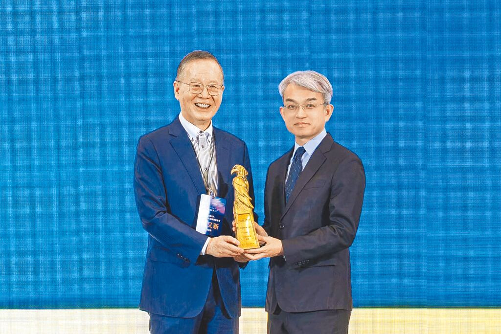 中信金控於「2025第九屆台北金鵰微電影展」囊括4項大獎,由台灣永續能源研究基金會董事長簡又新(左)頒獎予中信金控董事會副秘書長林永勝(右)。(中信提供)
