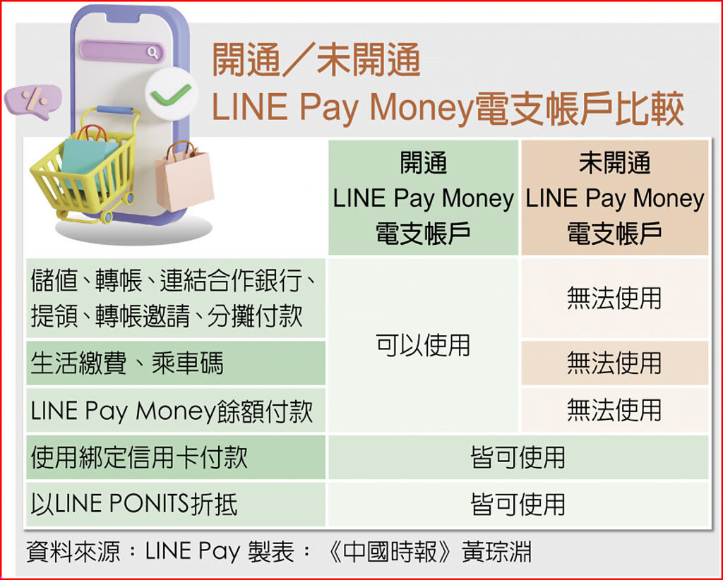 開通/未開通 LINE Pay Money電支帳戶比較