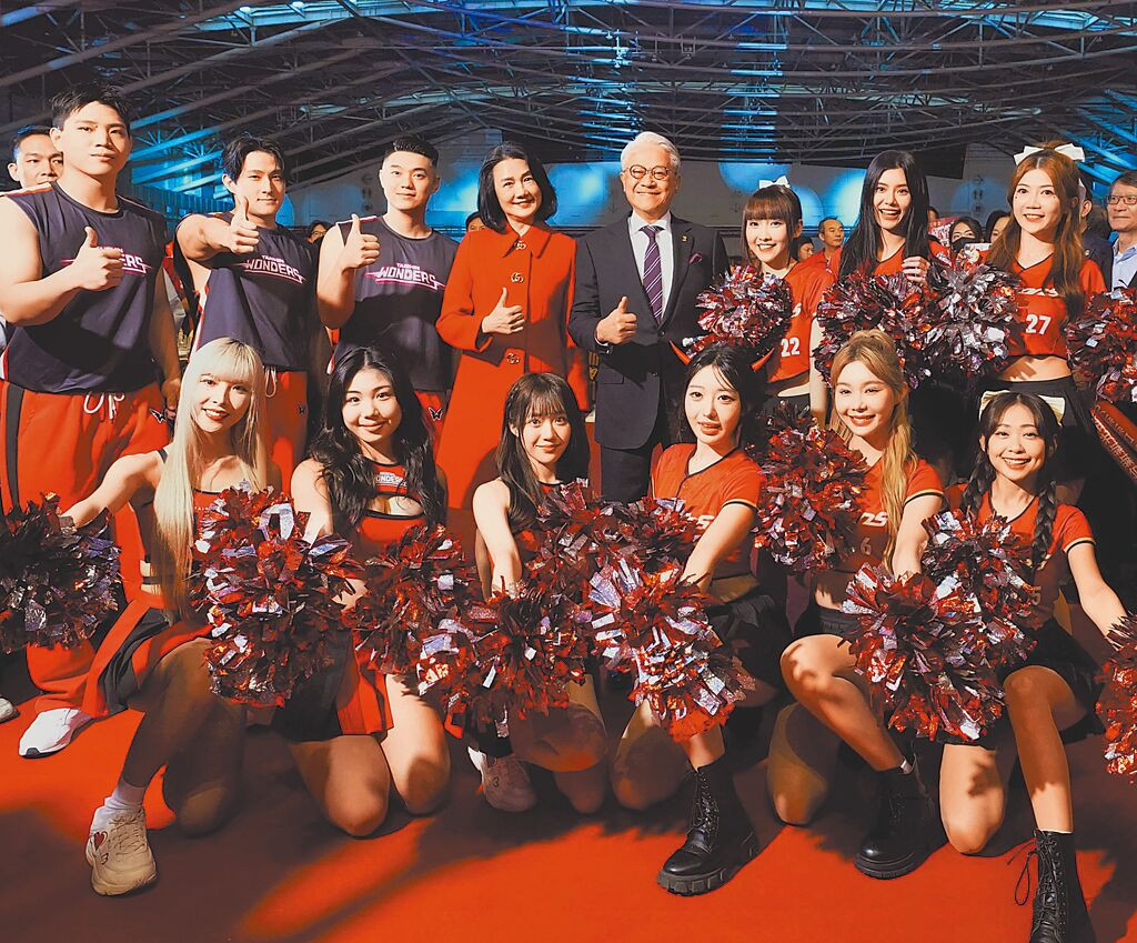 台新新光金控17日舉辦合併後首場旺年會,董事長吳東亮(後排右四)與夫人彭雪芬(後排左四)一同出席,期勉全體員工攜手同行,共創新局。(台新新光提供/黃琮淵台北傳真)