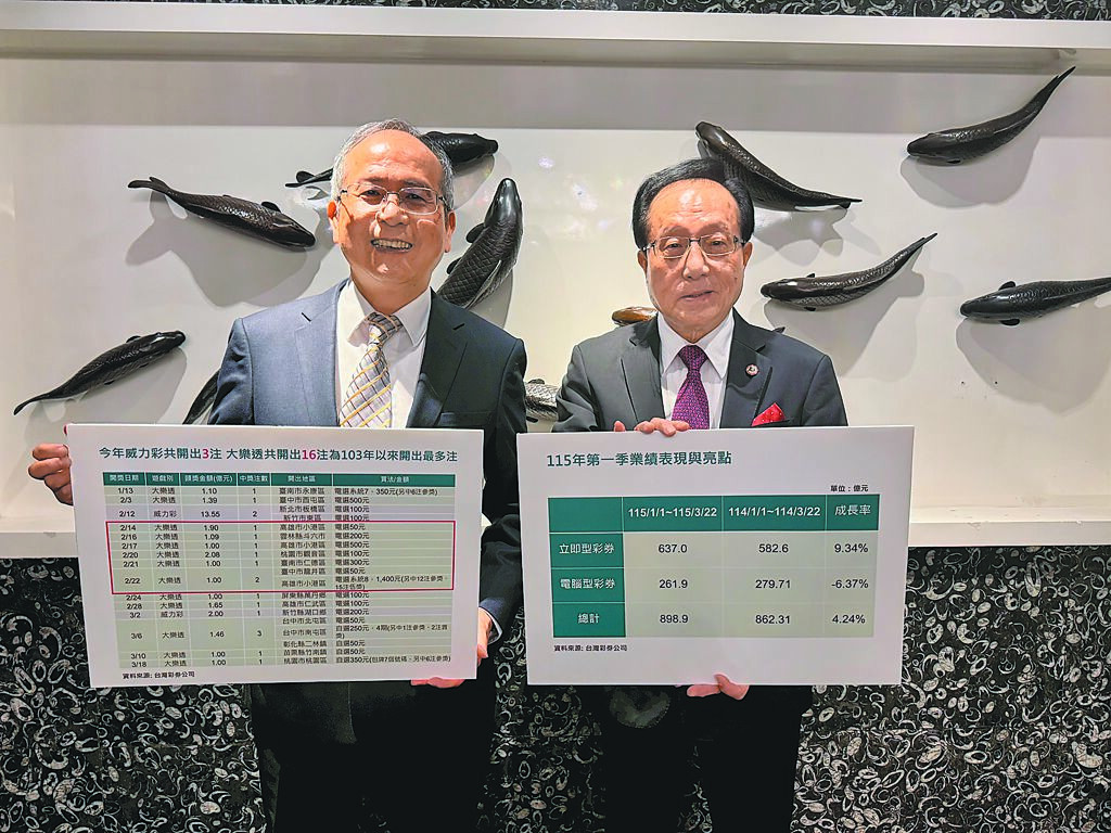 台灣彩券民國114年以1681.5億元銷售佳績,締造公益彩券史上年度新高後,今年在春節買氣加持下穩健成長,統計截至3月22日止,今年公益彩券累計銷售金額達898.9億元,較去年同期成長4.24%,再締造同期新高紀錄。