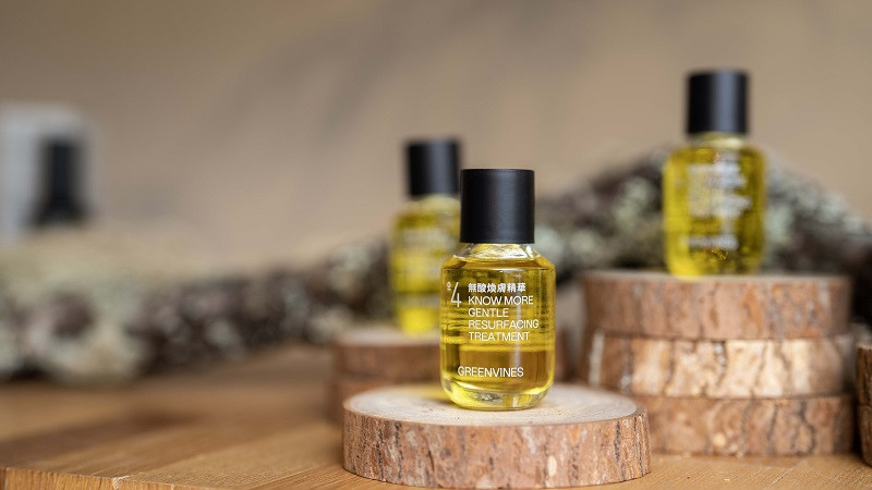 綠藤主張:臉部保養的意義是依循肌膚原本的生理機制,煥膚,不一定要受酸害。「無酸煥膚精華」為市場少見的 0% 酸煥膚產品,以「補骨脂酚、百里香萃取、厚朴萃取」所構成的獨特三重煥膚機制,打造 0% 酸的煥膚新解。