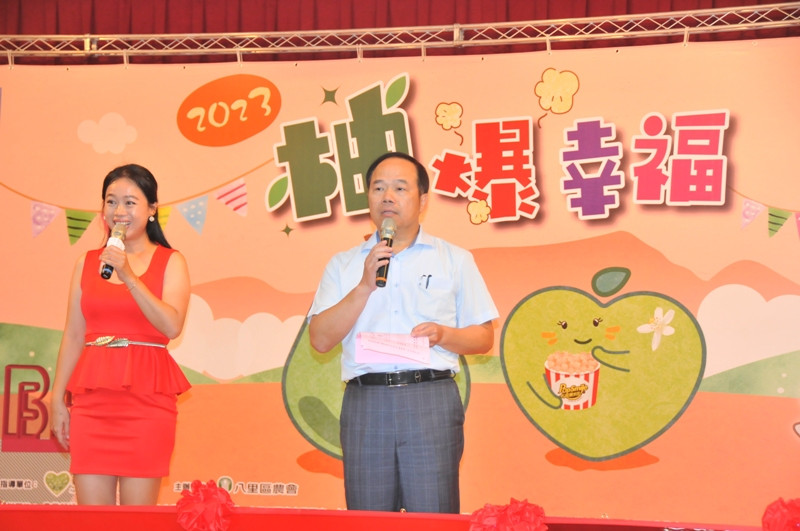 由八里區農會總幹事高金山公布112年度八里文旦柚評鑑比賽得獎名單。(圖/八里區農會提供)