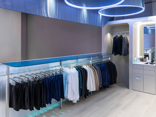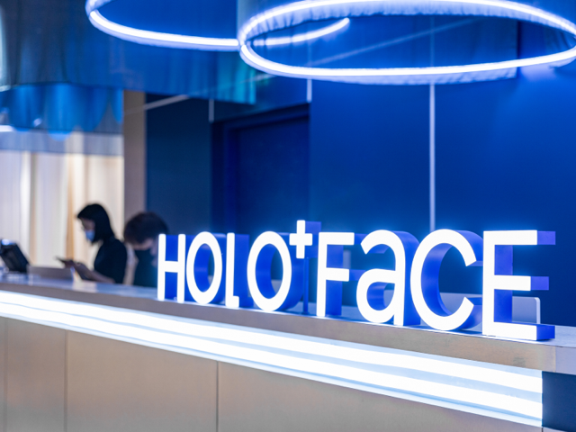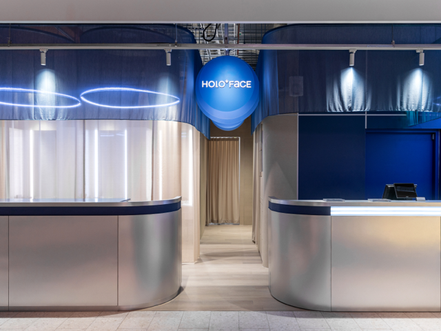 HOLO+FACE 新店誠品店,坐落於百貨 4 樓,以沈穩奪目「凝視藍」作為品牌基調,整體空間以「鏡頭」為設計靈感,創造有如進入鏡頭之中的沈浸式視角