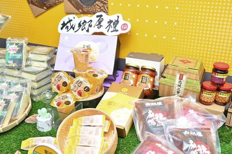 記者會現場邀請來自澎湖的「掌上明珠」,使用澎湖海菜製成栩栩如生的菜瓜布蛋糕,還有兼具在地文化特色及創意的牛屎餅,謝玉玲負責人分享到,今年透過中企署媒合統一iOPEN MALL線上商城及其冷鏈物流,讓本島的民眾也能享用到澎湖特色美食。來自彰化的「魔菇部落」致力推廣菌菇養生製品與飲食文化,今年不僅開拓豐原太平洋百貨通路、國道關西及湖口服務區通路,楊詠晴總經理特助提及,透過城鄉厚禮展售活動,讓更多人透過產品認識魔菇部落。而來自高雄的「志斌食品」和彰化的「萬生生機」今年透過中企署OTOP國際化輔導,前往日本東京、羽田參與臺灣OTOP城鄉厚禮展售會及試吃交流會,志斌食品董事長黃小鳳分享三天前獲得來自日本訂單的好消息。而萬生生機的黃文賢董事長特助表示,今年展售的銀耳與鳳梨酥結合的雪耳派亦獲得日本消費者與媒體的高度討論,同樣接獲來自日本的訂單,可見臺灣的優質產品廣受日本消費市場喜愛。日商詩國秋田公司高嶋年彌總經理表示,秋田道之驛現正辦理OTOP城鄉厚禮臺灣物產展,受到秋田當地消費者的喜愛,來客數及銷售額持續成長中,未來也期待與中企署有更多元的合作,進而將臺灣產品推廣到日本全國通路銷售。