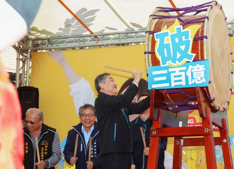 黃國榮副市長擊鼓慶祝台中購物節總金額突破三百億暨外縣市登錄百億達標。