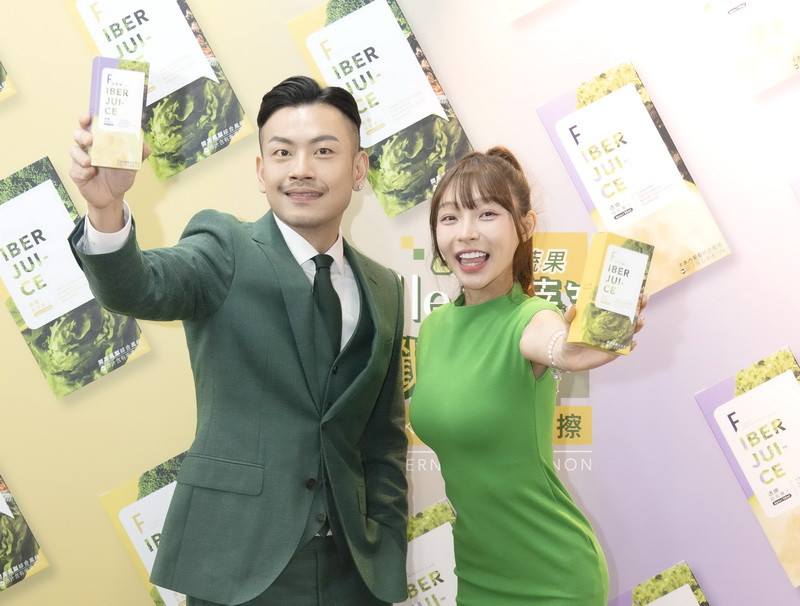 林襄(右)與七七老大(左)於2月27日「拉蓓超能纖汁狂銷慶功宴」合影。