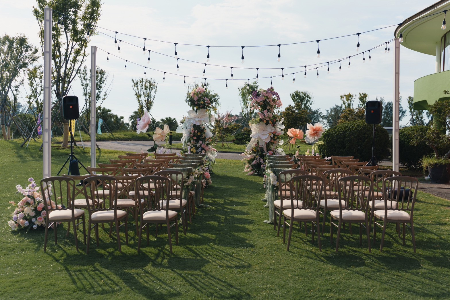 圖說:在高爾夫球場舉辦戶外證婚,在藍天與陽光的映襯下,營造出兼具浪漫與儀式感的婚禮氛圍。