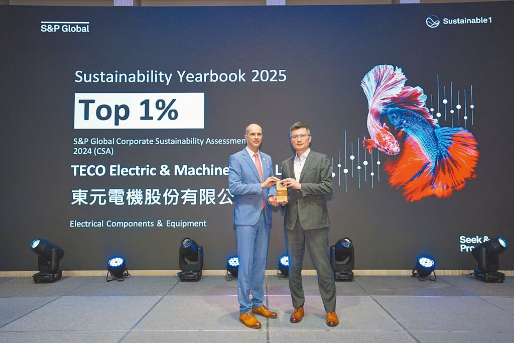 S&P永續年鑑22日在台北舉行頒獎典禮,東元電機第5度入選國際指數與評比機構標準普爾(S&P Global)2025年《永續年鑑(The Sustainability Yearbook)》,並榮獲全球Top 1%卓越企業殊榮,成為台灣11家入列企業之一,董事長利明献表示,東元以綠色創新為核心,連續獲得國際評比的肯定,展現永續實踐的領先地位。未來,將持續以電氣化、智能化與綠色能源為主軸,攜手全球夥伴打造兼具韌性與永續價值的產業生態系。