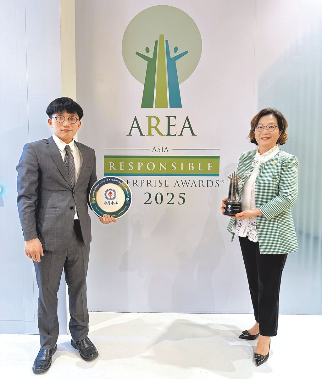 2025「亞洲企業社會責任獎」(Asia Responsible Enterprise Awards,AREA)頒獎典禮與永續高峰會,27日在泰國曼谷舉行,台灣中油連續3年獲頒「企業永續報告獎」,由發言人林珂如出席代表受獎,展現永續資訊揭露的透明度、全面性及與國際標準接軌的成果。