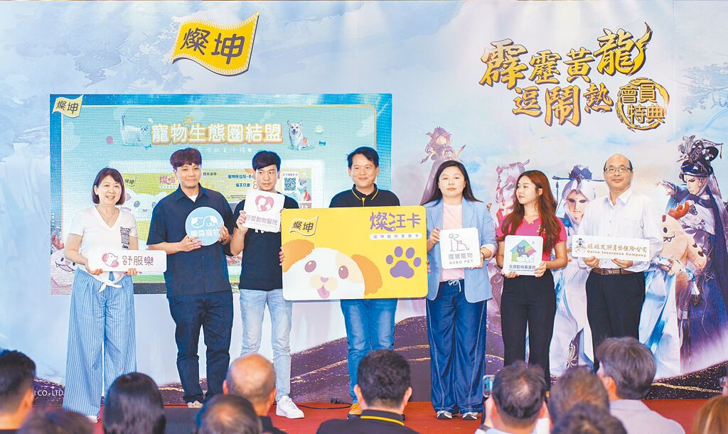 燦坤行銷長兼開發長李經緯(右四)表示「燦坤寵物卡」的優惠吸引更多品牌加入,擴大寵物生態圈聯盟。(吳松翰攝)