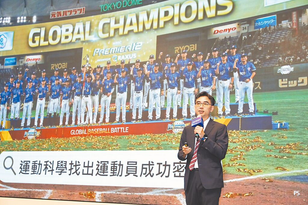 台中市運動局局長游志祥分享「科技賦能體育:台中智慧場館與全民運動的未來」,介紹科技結合體育的動能。(林勝發攝)