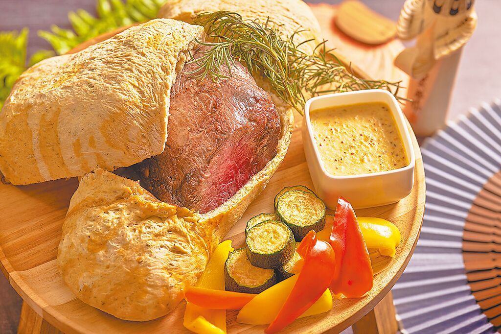 主廚特別推薦「香草麵包牛肉捲」,呈現歐陸與和風交融的層次口感。(JR東日本大飯店台北提供)