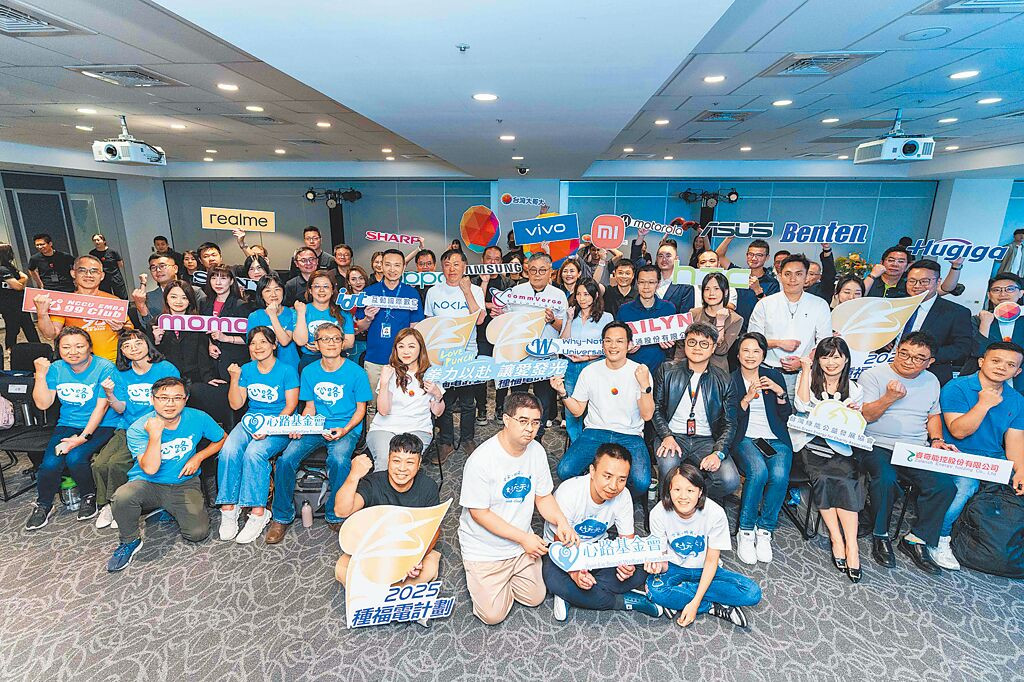 台灣大集結能量夥伴(智匯亞洲、淮南寰宇、互動國際數位、台林電通、泰廣科技)與13家手機供應商,連年支持倡議,讓心路基金會擁有未來20年穩定的綠電收益。(石智中攝)