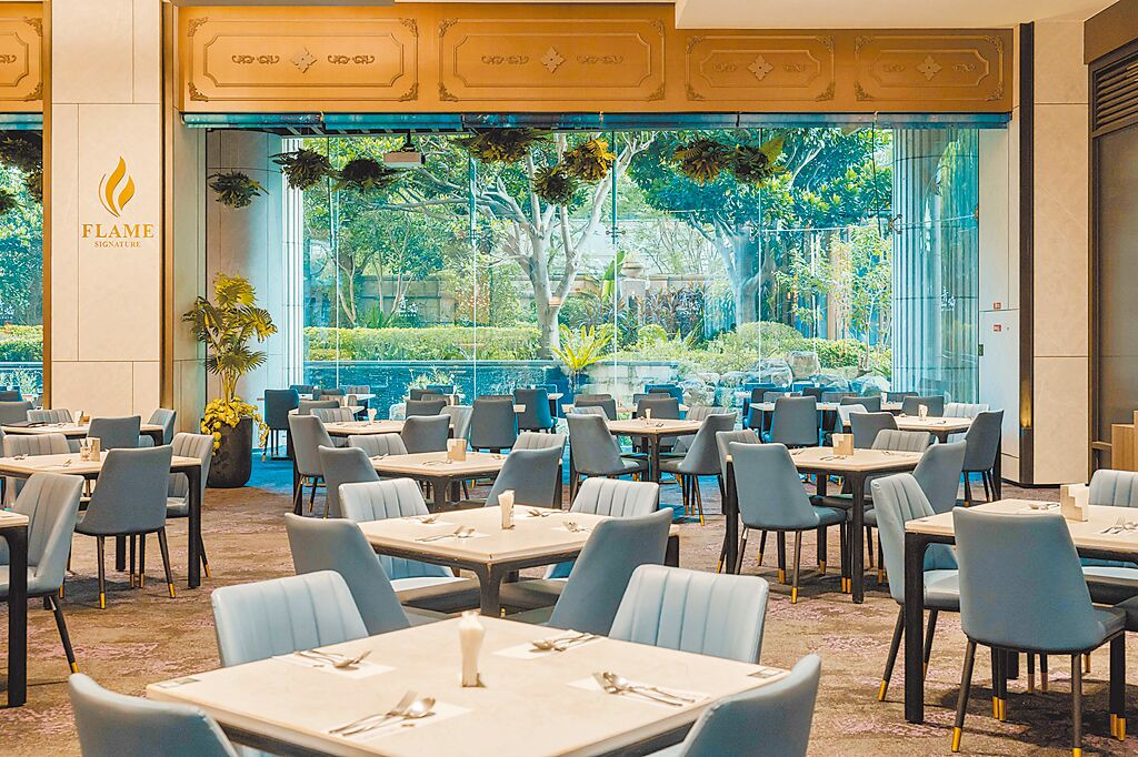 青焰此次進駐台北美麗信花園酒店以全新「青焰FLAME SIGNATURE」視覺映入眼簾,餐廳外呈現浪漫水池庭院和綠意花園,同時附設獨特氛圍的「JIU BAR」酒吧區,提供十多種紅白酒、台灣精釀啤酒與多種經典調酒,品牌更設計獨家主選套餐與創意料理的海陸饗宴,包括「美國極黑和牛」油花細緻均勻,肉質細膩多汁;「極品龍膽石斑佐白酒奶油醬」肉質緊緻彈牙,口感鮮甜高雅;「伊比利老饕豬佐莓果醬」擁有肥瘦相間的大理石紋,脂香迷人。