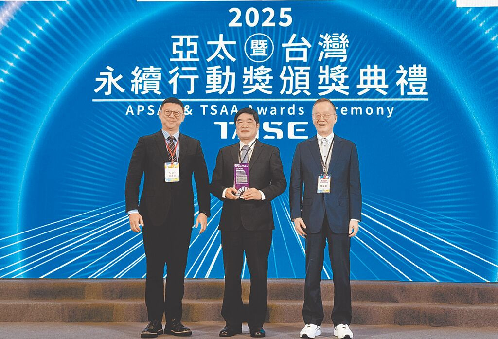 台灣中油獲「2025亞太暨台灣永續行動獎」六項大獎,由副總經理羅博童(中)代表受獎。(中油提供/王玉樹台北傳真)