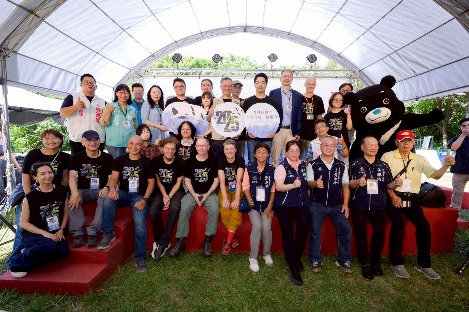 市長與來賓共同邀請民眾到關渡自然公園體驗「2025關渡國際自然藝術季」(/北市動保處提供)