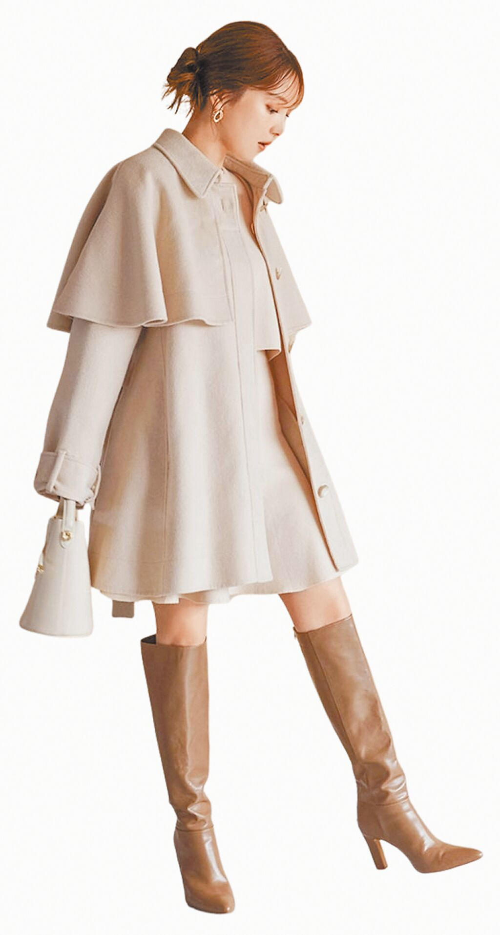 SOGO忠孝館SNIDEL斗篷披肩大衣,原價1萬2250元,特價7300元,黃、灰、象牙色3色共限量10件。(SOGO提供)