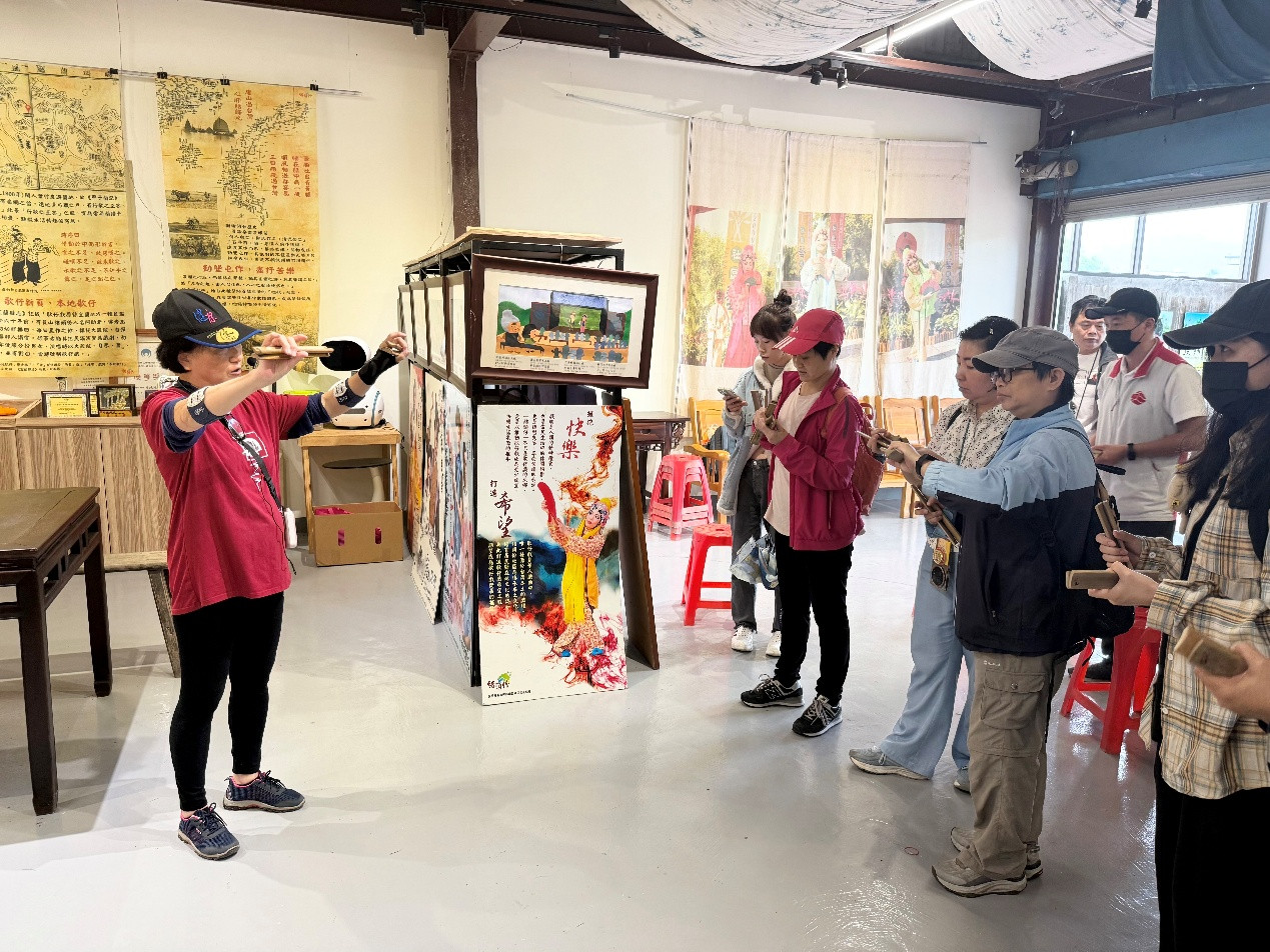 行程首站來到結頭份社區──歌仔戲的發源地。早年居民常於老茄苳樹下自編自唱,逐漸形成獨特的戲曲文化。社區發展協會理事長陳聰文與總幹事廖碧勤於2009年成立結頭份歌仔戲班,在蘭陽戲劇團指導下,每年舉辦「結頭份歌仔戲文化節」,推動戲曲教育與文化傳承。遊客在導覽過程中,除了了解歌仔戲歷史,還能親自學習舞步與樂器演奏,感受傳統藝術的生命力。