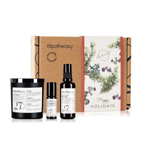 以品牌人氣 No.27 藍鬱晚香系列為主軸,包含精油蠟燭、空間噴霧與精油滾珠。香氣以快樂鼠尾草、晚香玉、依蘭依蘭等植萃調製,營造冬季居家放鬆氛圍,適合作為年末慰勞或節慶贈禮。