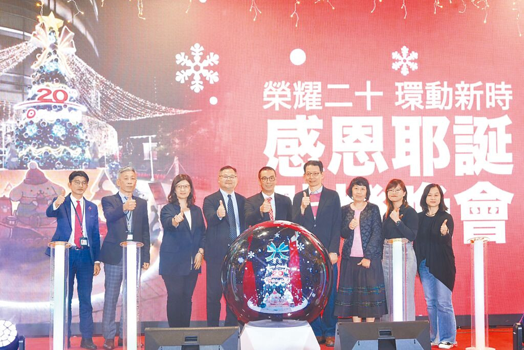 Global Mall新北中和舉辦20週年感恩耶誕點燈晚會,邀合作品牌及公益團體代表同慶。(Global Mall提供)