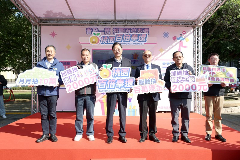 市府經發局表示,「桃園百倍奉還」配合普發現金一萬元政策,自114年11月12日起至12月31日止,吸引民眾踴躍參與,活動期間消費發票登錄數突破240萬張,登錄消費金額累計超過新臺幣20億元,有效帶動桃園在地商圈、賣場及觀光產業買氣,進一步提升城市整體消費動能與觀光吸引力。本次規劃「天天抽、週週抽、月月抽及壓軸抽」等多元抽獎機制,讓民眾於活動期間天天有期待、週週有驚喜,並結合「120倍奉還」加碼企劃,民眾只要到桃園在地觀光工廠及重點商圈特約店家消費,即可額外參加「消費滿百抽2000」加碼抽獎。