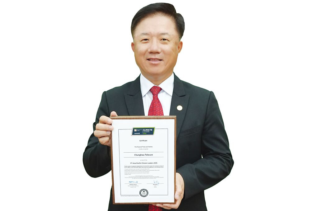 中華電減碳有成 冠電信業 奪英國《金融時報》2025亞太氣候領袖殊榮