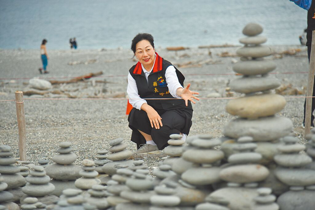 「2025曼波新城太平洋國際疊石藝術季」在花蓮縣新城鄉七星潭海灘盛大登場,花蓮縣長徐榛蔚邀請世界各地的藝術創作者與遊客走進花蓮。(花蓮縣政府提供/王志偉花蓮傳真)