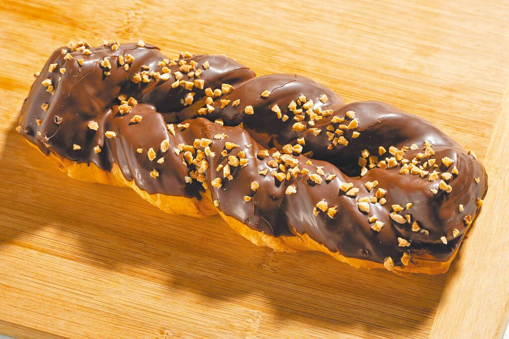 全聯阪急麵包「杏仁巧克力派司」一咬就能感受濃郁可可香氣,39元。(石智中攝)