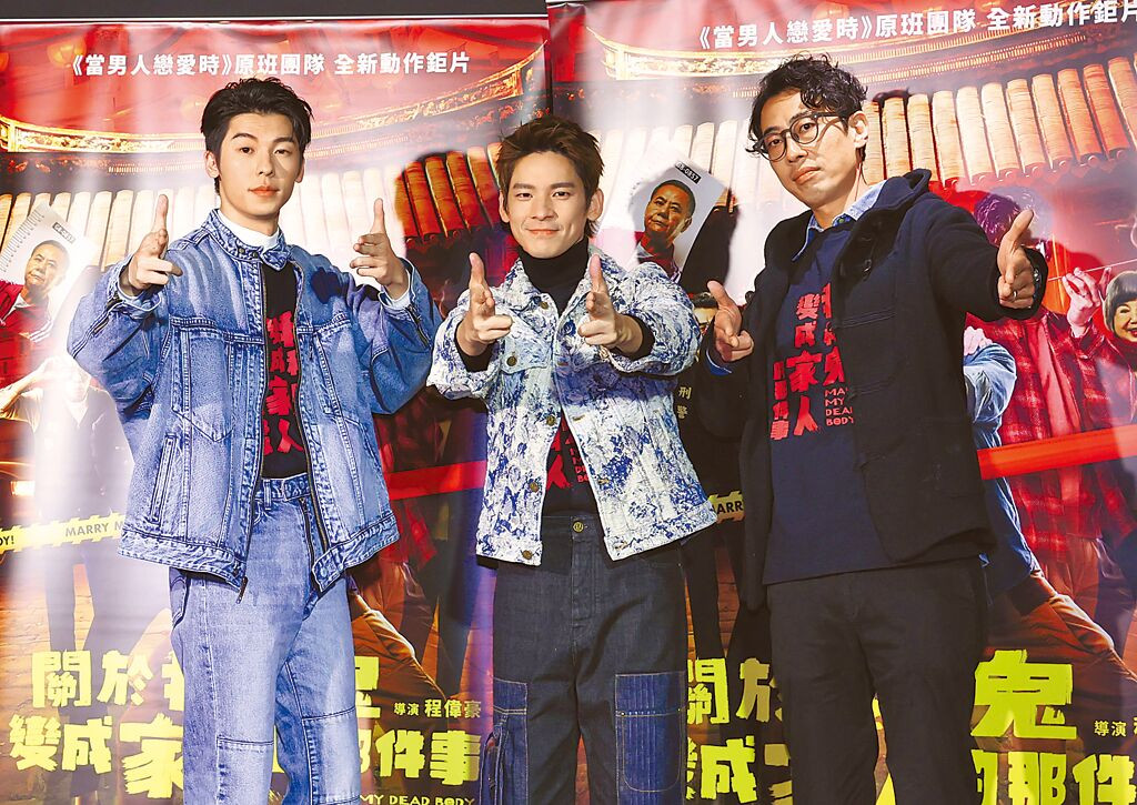許光漢(左起)、林柏宏、馬念先昨為《關於我和鬼變成家人的那件事》合體造勢。(陳俊吉攝)