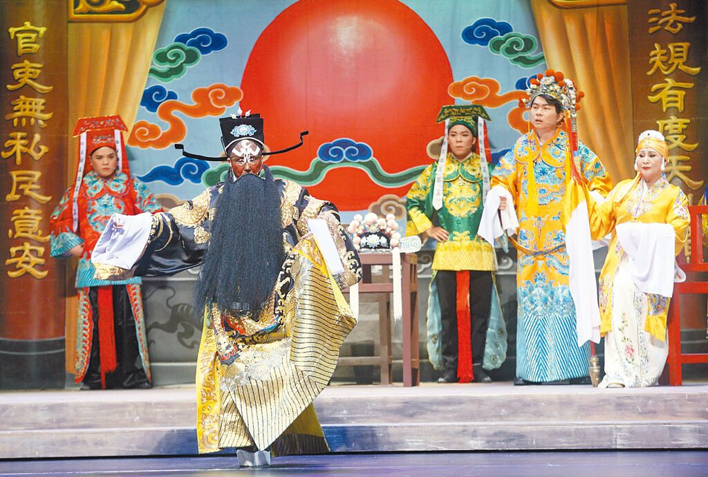 《散戲》中孫翠鳳為了救場「一秒變包公」,大玩變臉秀,是歌仔戲界少有的花臉「女包公」。《散戲》將於10月21日到22日在台北國家戲劇院演出。(張鎧乙攝)