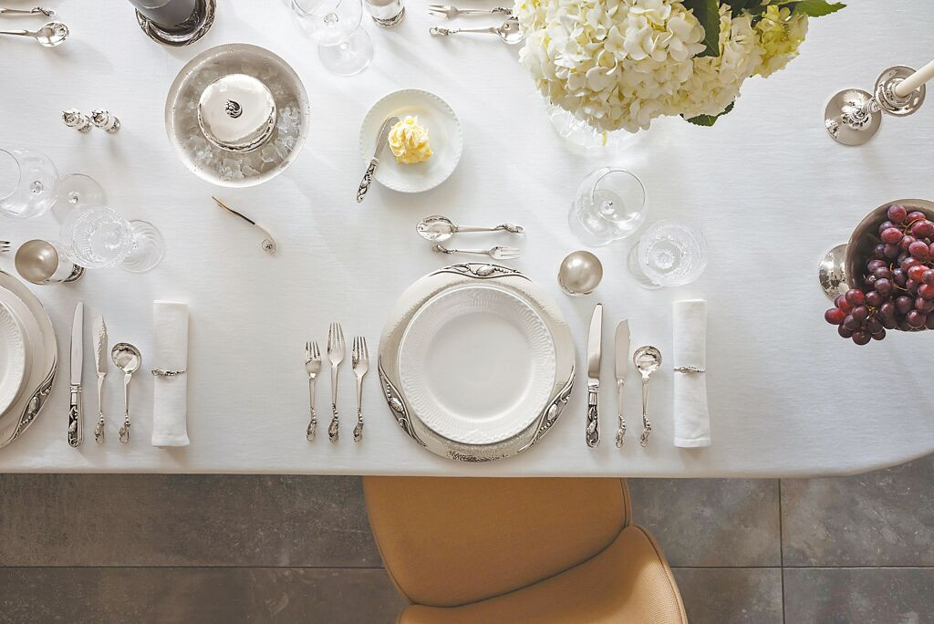 丹麥精品喬治傑生銀雕餐具向來是皇室貴族餐桌上的要角,今年「喬治傑生秋冬銀雕藝展」即日起登台巡迴展出,以「BLOSSOM TABLE」為主題。(GEORG JENSEN提供)