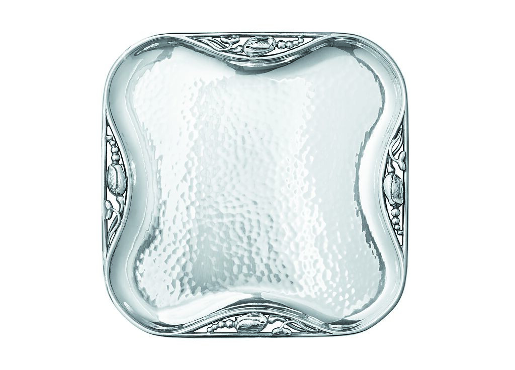 喬治傑生BLOSSOM TABLE 120周年紀念款木蘭花純銀方盤,21萬元。(GEORG JENSEN提供)