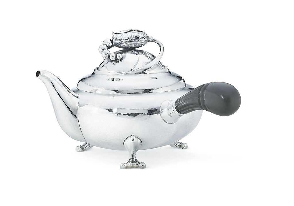 喬治傑生大師於1905年設計的BLOSSOM木蘭花純銀茶壺,是經典傳世之作,62萬元。(GEORG JENSEN提供)