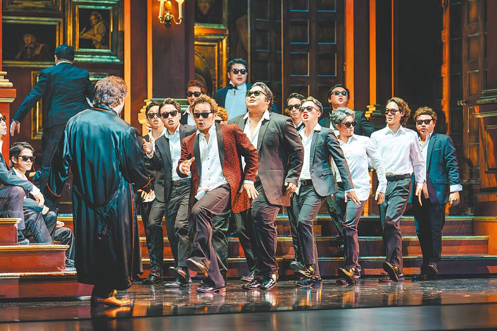 國家歌劇院2025遇見巨人系列推出旗艦歌劇《弄臣》,其中「反派男團」由NTT╳勇源歌劇合唱團擔綱演出,展現能唱能演的實力。(台中國家歌劇院提供/馮惠宜台中傳真)