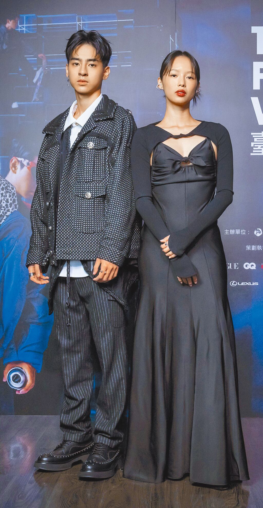 劉敬(左)、王渝屏分別穿上新生代品牌HANSEN和PCES服裝出席活動。(臺北時裝週提供)