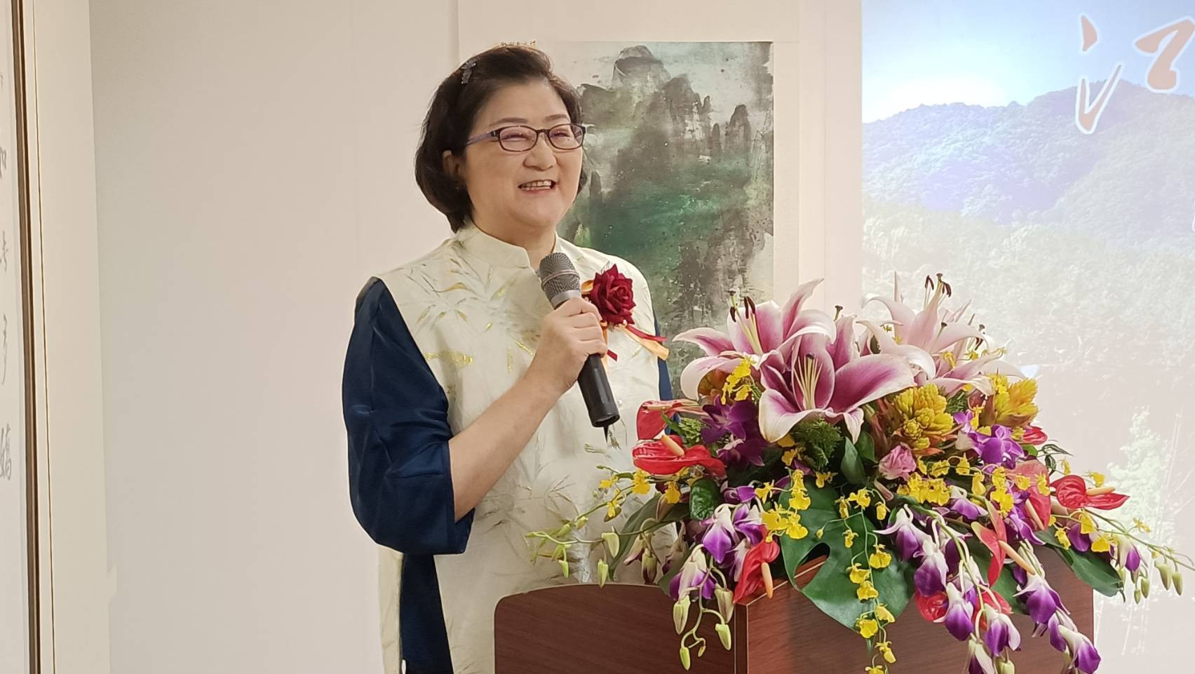 雷倩致詞時表示,藝術家及閲聽大眾眼睛看到的是有形江山,但情感的、文學的、藝術的江山更是淵遠流長,藝術家的工作能讓兩岸同胞更為心手相連。