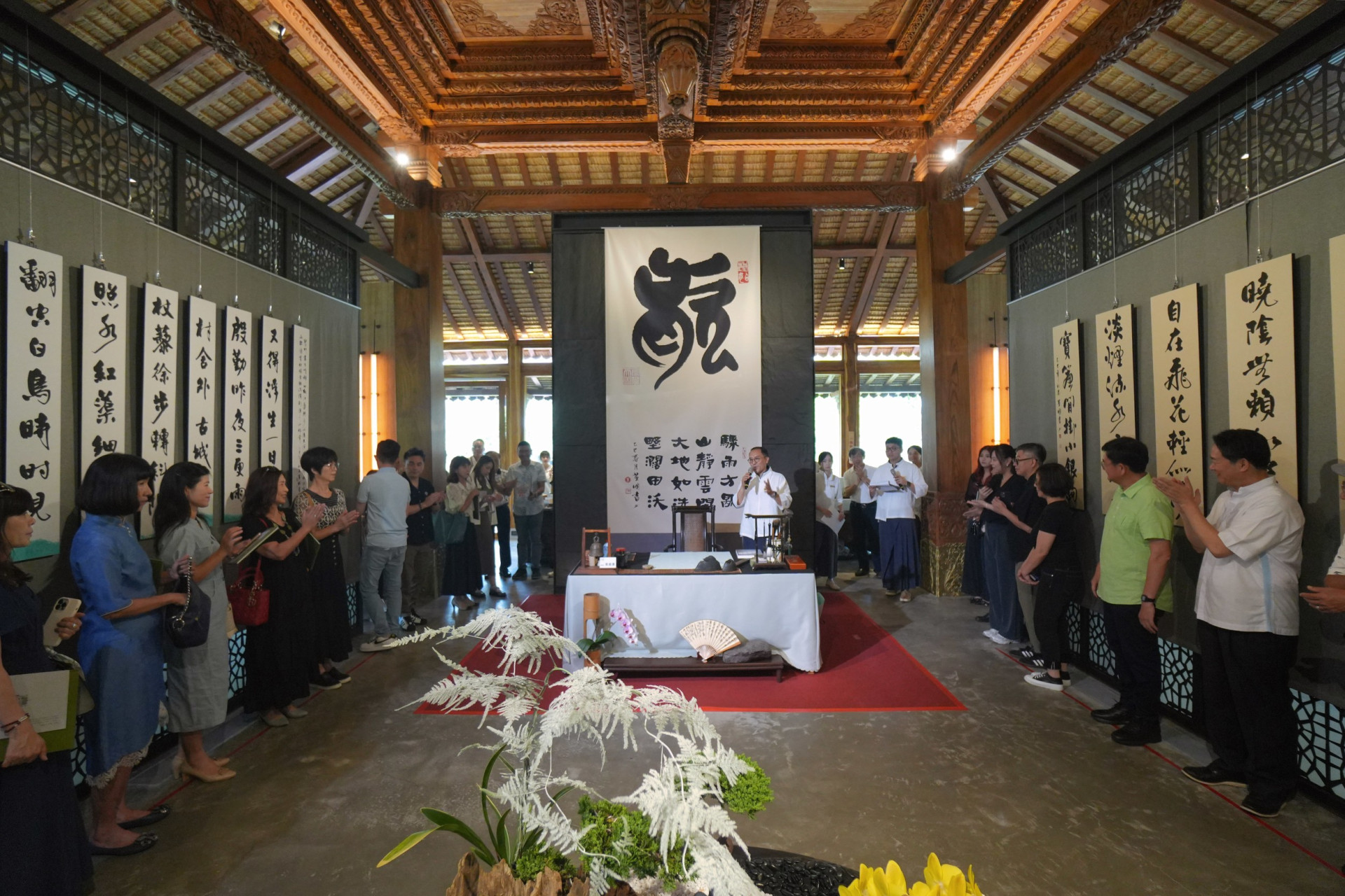 本次展覽以「歇」為題,映照出建築設計與書法藝術中同樣追求的留白哲學。川睦建築長年耕耘人文空間的構築,重視生活的節奏與內在秩序;書藝家黃國書則以豪邁筆勢與深厚書道涵養,揮灑出關於「停頓」與「靜心」的墨痕之美。